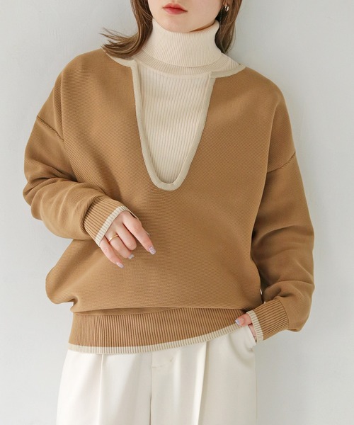 女性らしい柔らかい配色カラーのキーネックダンボールニット WEB限定 弾力のあるニットはチクチクしないストレスフリーな着心地。 ニットなのに毛玉・シワができにくく、マシンウォッシャブル可能でお手入れしやすい。 ストレッチ性が高く、軽量なのも嬉しいポイント! ヒップにかかるくらいの丈感でゆったり着用でき、こなれ感のあるシルエットに◎ ベーシックな配色カラーが幅広い世代におすすめなアイテムです。 ≪Styling≫ 深めのキーネックがレイヤードスタイルを楽しめるアイテム。 春秋はロンTやシアートップスを合わせ、冬はハイネックトップスを合わせることで、 ロングシーズン着用して頂けます。 ≪Fabric&Detail≫ 伸縮性・・・あり 透け感・・・なし 厚み・・・★★★☆☆ 洗濯機可 ▼《お気に入り登録》のおすすめ▼ 【商品のお気に入り登録】 気になるアイテムのハートマークを押してお気に入り登録すると 完売カラーの再入荷通知やラストの通知、セール通知を受け取ることができます。 【ブランドのお気に入り登録】 新商品や再入荷など、いち早くブランドのお得な情報を受け取ることができます。 ぜひご利用頂き、お買い物をよりお楽しみください。 【She mo shelly / シーモシェリー】 定番で使えるベーシックデザインからディティールに拘ったデザインまで、 トレンド要素をバランス良く落とし込んだ商品ラインナップをご提案しています。 ※撮影場所により、実際の色味と若干異なる場合がございます。 あらかじめご了承くださいませ。