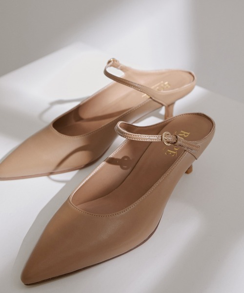 【素材】 スムースの人工皮革を使用。一般的な合成皮革と違い、マイクロファイバーの基布構造になっているため、リアルレザーのように足にフィットする履き心地がポイントです。 【デザイン・シルエット】 王道ポインテッドのトゥ先のシルエットと土踏まずまでぴったりフィットする木型をオリジナルで開発し、ヒールはあえて華奢にストラップも極細に設計し、フェミニンな大人のミュールに仕上げました。ヒール高さは4.5cmと歩きやすい高さです。ストラップがあることでかかとが浮かず、細いヒールでも安定感のある履き心地のミュールです。 【カラー】 ブラック、トープ(ダークベージュ)の2色展開。 ※画像の商品はサンプルです。実際の商品と仕様、加工、サイズが異なる場合がございます。 ※撮影場所やライティング、お使いのモニター環境によって色の見え方が異なる場合がございます。 ※商品のカラーは画像の色味をご参照ください。動画は仕様説明のため、色味が実物と異なる場合がございます。