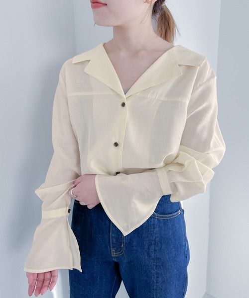 ーーー1枚でもインナーとしても、羽織りとしても使いやすい万能な開襟シャツ。ーーー【デザインと特徴】大き目のオープンカラーと、身頃の切り替え、袖長めのフレアーデザイン。程よくゆとりのあるゆったりシルエットで、細かいディティールとシンプルながらもバランスに拘った1着です。Vネックのカーデから大き目の襟を出すレイヤードもお洒落でおすすめです。オールシーズン着用可能なさらっとした素材なので、夏に向けても羽織としても◎ 【素材特徴】さらっとした肌触りで軽い着心地。少しの透け感と、程よい光沢が大人っぽく、表面のしぼ感がこなれ見えします。【洗濯可否】手洗いでの処理が行えます。---------------------------------------------------------《インフォメーション》◆商品のお気に入り登録完売していても再入荷時に再入荷通知を受け取ることができますので、是非ご登録ください♪◆ブランドのお気に入り登録新商品や再入荷などの情報を受け取ることができますので、是非ご登録ください♪公式Instagram >>> 【@apartbylowrys 】おすすめアイテムや新作情報、" ショップニュース "を更新中! ぜひフォローしてみてくださいね^^