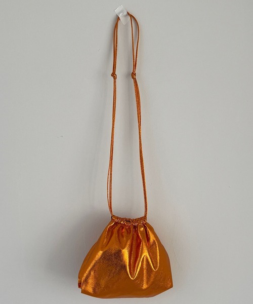 ■デザイン■ メタリック素材の巾着バッグ。 ショルダーバッグとして斜めに掛けても、手持ちで持っても可愛いです♪ 大きすぎないので、持ちやすいサイズ感◎ 中にポケットもあるので、鍵やすぐに取り出したい物は分けて入れれるのも嬉しいポイント!
