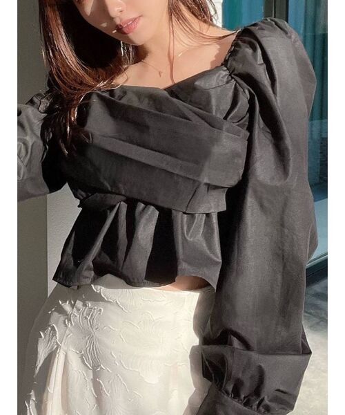1枚でキレイ目な印象に決まるブラウス▽Point▽カシュクールでデコルテを綺麗に見せてくれるブラウス。袖にはボリュームを出し、可愛らしい印象に仕上げました。バスト下にゴムを入れ、ぺプラムデザインに。ハイウエストボトムスと相性抜群の1枚◎
