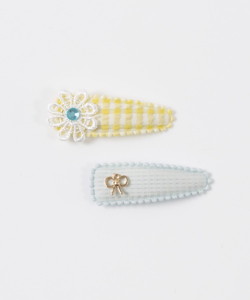 お花レースが付いたギンガムオーガンジーと、リボンチャームが付いた細かいギンガムチェック柄の、パッチンどめヘアピン2個セットです。セット使いでも単品でもアレンジが楽しめます♪【サイズ】5.5cm 【KP DECO/ケーピーデコ】 DECOは「雑貨」という意味。KP・KP BOY・trois lapinsブランド全てに合わせられるマルチな雑貨ブランドです。