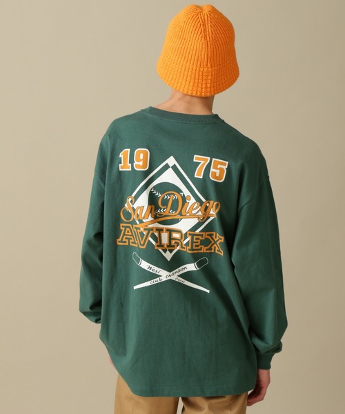 BASE BALL CLUB T-SHIRT / ベースボール クラブ Tシャツアメリカブランドらしい無骨な生地感が特徴的な太番手糸を採用したロングスリーブTシャツ。AVIREXのアーカイブグラフィックをベースに、アメリカ西海岸/サンディエゴの架空の野球チームをデザインソースにグラフィックやカラー配色はクラシカルな雰囲気に。フロント右下につけたブランドラベルもアクセントになっている。【AVIREX/アヴィレックス】 1975年にアメリカ空軍のコントラクターとして創業し、フライトジャケットを供給した事でその認知度を飛躍的に高めた。 ミリタリーに起源を持つアヴィレックスは、機能的なデザインが醸し出す特有の美しさに支えられている。 その個性的な表情は、映画「インディー・ジョーンズ」「トップガン」「メンフィスベル」などのスクリーンでも活躍し、喝采を浴びた。 その無駄の無いデザイン、ノスタルジックな味わいは今なお世界中の多くの人々から支持され続けている。 ■お使いのパソコンのモニターによって、実物商品とカラーが異なって 見える場合があります。誠に申し訳ございませんが、ご理解下さいます様お願いいたします。 ■当ショップの在庫数は 直営店舗の商品も含まれています。在庫数が日々変動する為、ご注文頂いた時点で在庫が完売になっている場合がございます。 ■サイズ表は、製品の生地や織りなどの特性により、多少の誤差はございます。予めご了承ください。 --------------------------------------------------------------------- 【お買いものをお楽しみいただく為に!】 ▼商品のお気に入り登録 完売カラーの再入荷通知や、ラスト1点の通知、セールの通知も受け取ることができます。 ▼ブランドのお気に入り登録 新商品や再入荷など、いち早くブランドのお得な情報を受け取ることができます。 ---------------------------------------------------------------------
