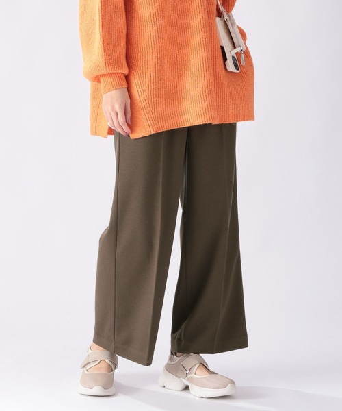 様々なシーンで使えるきれいめパンツ肌触りがなめらかなウールライク素材を使用したセンタープレス入りのフレアパンツ。ウエストゴム+紐のイージー仕様。普段使いにはもちろん、オフィスシーンにもおすすめのアイテムです。