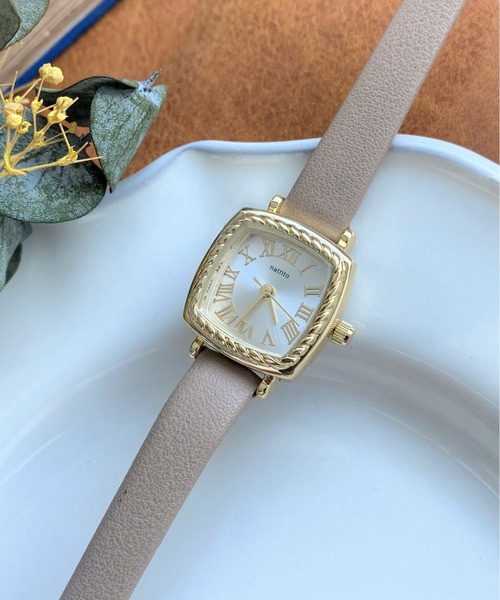 ■小ぶりケースが大人な合皮の腕時計■ シルバーのミラー文字盤にスクエアケース、小ぶりで細いベルトが大人な雰囲気の時計です。 ケースの周りに施されたロープ模様がクラシックなデザイン。 お仕事用にもプライベートにも、どんなスタイルにも合わせやすくてとっても便利です。 ※保証書が同封されていますので、無くさずに保管をお願いいたします。 ※生活防水はついていません。 【SPEC】 仕様:電池式 ムーブメント:日本製 ▼商品画像について▼ ※撮影場所やお使いのモニター環境により実際の商品と若干お色味が異なる場合があります。 ======================= 《お気に入り登録》でお得な情報がたくさん! ▼商品のお気に入り登録▼ ♡をクリックして、お気に入り登録をすると再入荷通知や、ラスト1点の通知をお知らせします。 ▼ブランドのお気に入り登録▼ お気に入りショップに追加していただくと、いち早く ThreeFourTime のお得な情報・新入荷情報を受け取ることができます。 =======================