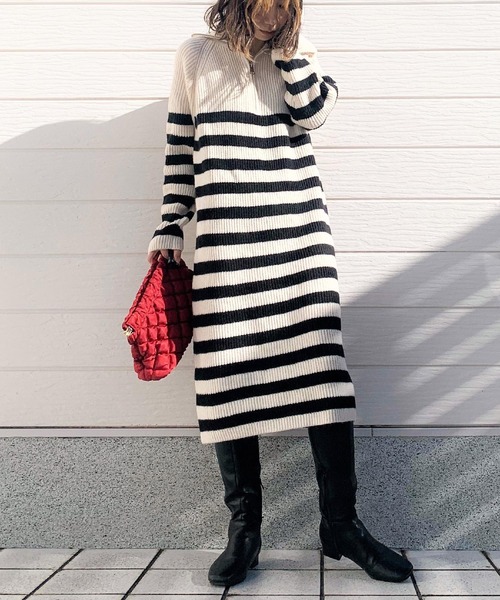 ハーフジップデザインのニットワンピースです。 フロントジップスタンドカラーなので、ジップの上げ下げでTPOに合わせて着こなしが可能。 シンプルな無地とカジュアルなボーダーの印象の異なる2色でご用意しました。 ご自宅での洗濯機洗いが可能なのも嬉しいポイント。 インナーにタートルを合わせたり、ボトムにパンツを合わせたレイヤードコーデもおすすめです。 《インフォメーション》 ◆商品のお気に入り登録 完売していても再入荷時に再入荷通知を受け取ることができますので、是非ご登録ください。 ◆ブランドのお気に入り登録 新商品や再入荷などの情報を受け取ることができますので、是非ご登録ください。