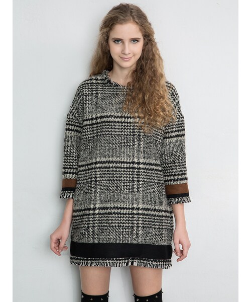 - Made from knit and cotton blend - Crew neckline - Tassel collar, cuffs and hem - Contrast details at cuffs and hem - Back zip - Dropped shoulder - Model size UK6-8, wears Size S, Height 171cm