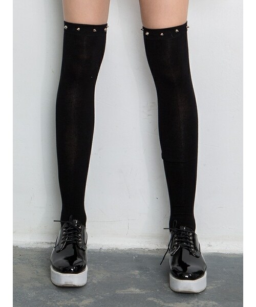 - Made from a cotton-mix fabric - Over-the-knee style with studs - Open Toe - One size fits all - Model's height 171cm