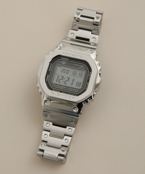 G-SHOCK(ジーショック) 『先進機能を搭載したフルメタルデザイン』1983年に誕生したG-SHOCK初号機DW-5000C。その象徴であるスクエアデザインはそのままにフルメタル化し、スマートフォンリンクをはじめとした先進機能を搭載したGMW-B5000シリーズです。硬質なステンレス素材のメタルベゼルと本体ケース部の間にファインレジン緩衝体を挟む耐衝撃構造により、フルメタルケース化を実現。高密度実装技術によりサイズもキープしています。裏蓋には重厚感あるスクリューバックケースを採用し、耐摩耗性に優れるDLC処理を施しました。 メタル製のバンドピースにはディンプル加工を施し、初号機の樹脂バンドデザインを継承。フィルムソーラーセルやSTN-LCD(液晶)を用いて視認性も良くなっています。 機能面ではBluetooth(R)通信機能を備え、専用アプリとの連携により正確な時刻情報を取得可能。更に標準電波(マルチバンド6)による時刻修正システム、タフソーラーによる安定駆動、高輝度フルオートLEDバックライト、ワールドタイム、6ヵ国語の曜日表示などの実用性も備えます。 原点を継承しながらもフルメタル化でさらに洗練されたG-SHOCKです。 仕様 ・ケースサイズ(縦×横×厚さ)49.3 × 43.2 × 13mm ・20気圧防水 ・タフソーラー(ソーラー充電システム) ・耐衝撃構造(ショックレジスト) ・モバイルリンク機能 ・「G-SHOCK Connected」対応 ・ストップウオッチ(1/100秒(1時間未満)/1秒(1時間以上)、24時間計、スプリット付き) ・時刻アラーム5本(1本のみスヌーズ機能付き)・時報 ・LED:ホワイト ・操作音ON/OFF切替機能 ・ワールドタイム5本:世界39都市(39タイムゾーン、サマータイム自動設定機能付き)+UTC(協定世界時)の時刻表示、ホームタイムの時刻入替機能付き ・タイマー(セット単位:1秒、最大セット:24時間、1秒単位で計測) ・LEDバックライト(フルオートライト、スーパーイルミネーター、フェードイン・フェードアウト、残照機能、残照時間切替(2秒/4秒)付き) ・フルオートカレンダー ・パワーセービング機能 ・フル充電時からソーラー発電無しの状態での駆動時間 機能使用の場合:約10ヵ月 パワーセービング状態の場合:約22ヵ月 ・12/24時間制表示切替 日付表示(月/日表示入替) 曜日表示(英・西・仏・独・伊・露の6ヵ国語切替) メーカーNO:GMW-B5000D-1JF G-SHOCK(ジーショック) 「絶対に壊れない時計を作りたい。」時計とは貴重品であり、宝飾品と同様に丁寧に扱われていた時代に、その常識を覆す発想で開発がスタート。10年間ときを刻み、10気圧以上の防水性能をもち、10mの落下衝撃に耐えるという「トリプル10」の開発思想のもと、1年半以上の試行錯誤の上、モジュールを点で支える中空構造を生み出し、耐衝撃構造を持つ時計として誕生。Gは「Gravity(重力)」を意味し、重力の衝撃に耐える時計「G-SHOCK」と命名された。 ▼商品のお気に入り登録 お気に入りアイテムの再入荷や残り1点の通知を受け取ることができます。 ▼ブランドのお気に入り登録 新作アイテムの入荷や人気アイテムの再入荷、タイムセールやクーポンなど、 いち早くブランドのお得な情報を受け取ることができます。