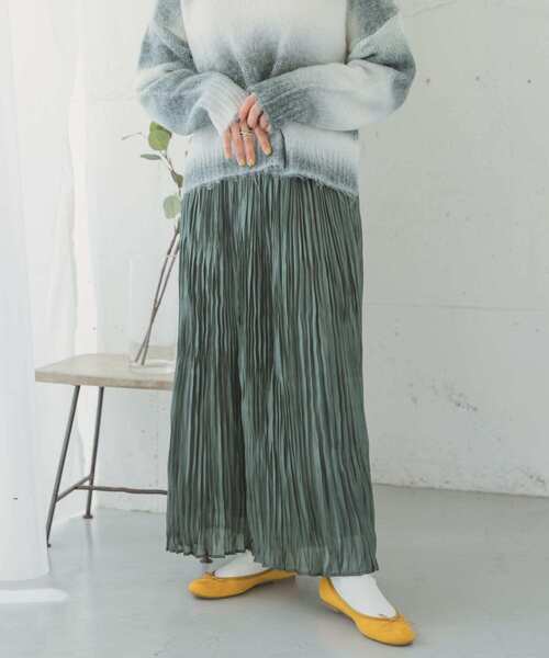 光沢感のあるシャイニー生地で仕立てたプリーツスカート。ラグジュアリーかつ存在感のある1着ながらも、普段使いしやすいカラーラインナップが嬉しいポイント!ウエストゴムで快適な穿き心地も◎シーズンを問わず取り入れやすいアイテムとなっております♪ ※商品画像は、光の当たり具合やパソコンなどの閲覧環境により、実際の色味と異なって見える場合がございます。予めご了承ください。 ※商品の色味の目安は、商品単体の画像をご参照ください。 ▼お気に入り登録のおすすめ▼ お気に入り登録商品は、マイページにて現在の価格情報や在庫状況の確認が可能です。 お買い物リストの管理に是非ご利用下さい。 ----------------------------- 透け感:なし 伸縮性:なし 裏地:あり 光沢:あり ポケット:なし -----------------------------