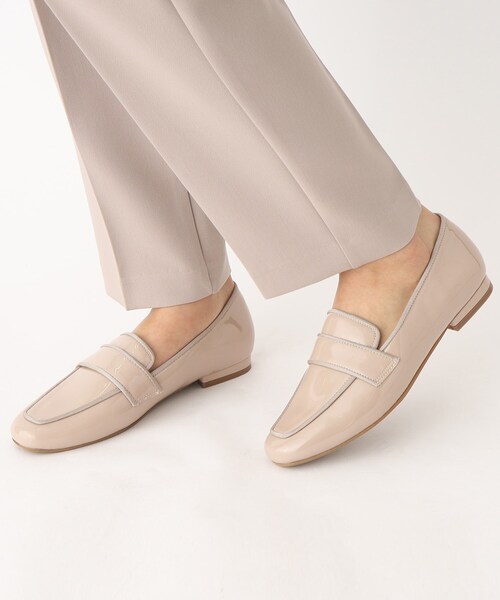 【My style is...掲載】 ツヤのあるエナメルでローファーをアップデート 【デザイン】 アッパーデザインを深めにデザインしたフラットローファー。 あえてメタルパーツを使用せず、すっきりとしたアッパーに仕上げています。 アッパー内側はジャージ素材に切り替え、インソールには低反発クッションを施しており、歩きやすさも◎です。 ソックス合わせでも使え、ON/OFF問わずコーディネイトしていただけます。 【素材】 エナメルフェイクレザーとグログランリボンのパイピング使いでクラシカルな雰囲気に仕上げています。 店舗へのお問い合わせ商品番号:C71-26005 ●製品寸法: 02(23.5~24.0cm):ヒール高1.5cm 幅7.7cm 03(24.0~24.5cm):ヒール高1.5cm 幅7.9cm 備考:重量:03(24.0~24.5cm)片足約225g