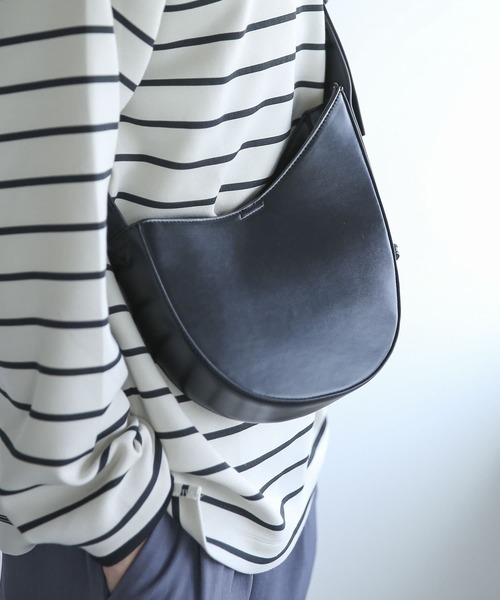 スタイリッシュでトレンドデザインのショルダーバッグ 〇トレンドのハーフムーン型バッグ 〇必需品がすっぽりと入る幅広マチ 〇ショルダーはお好みの長さに調節が可能! 〇ユニセックスでお使いいただけます! styling いつものスタイルにお使いいただくだけでトレンドのスタイルに早変わり!ショルダーを長めにして斜め掛けもいいですが、短めにして肩掛けが今風スタイルでおすすめ! material 微光沢のあるフェイクレザーを使用しています。程良く柔らかく、しっかりとした厚みのあるフェイクレザーのため、安心感があります。 ※この商品は、合成皮革を使用しています。素材の特性上、空気中の湿気や紫外線、熱や汚れなどにより、時間の経過とともに劣化(剥離・ベタつき)します。 ※汗や雨などで湿った場合や強い摩擦により他の衣料や車のシート、ソファーなどに移色することがあります。また、保管時も他の衣料などと重ねて保管すると移色が生じる場合がありますのでご注意ください。 ※その他お取り扱いに関しましては、商品に付属のアテンションタグをご覧ください。 総重量 : 約290g ※商品画像は、光の当たり具合やパソコンなどの閲覧環境により、実際の色味と異なって見える場合がございます。予めご了承ください。 ※商品の色味の目安は、商品単体の画像をご参照ください。 ▼お気に入り登録のおすすめ▼ お気に入り登録商品は、マイページにて現在の価格情報や在庫状況の確認が可能です。 お買い物リストの管理に是非ご利用下さい。
