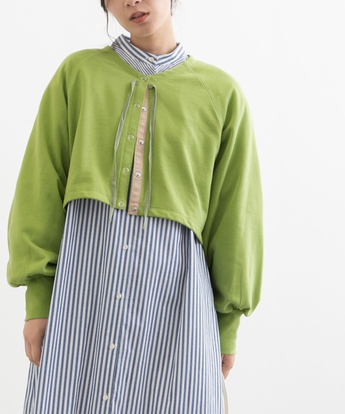 コンパクトな丈感のショートカーデ ■Point ・前の丈は短くすっきりと、後ろはやや長めに前後差があるので安心した着心地です。 ・アクセントのフロントのリボンは結んでも垂らしたままでも◎。 ・シーズンレスで気軽に着用できて、ご自宅で手洗いできるイージーケアも嬉しいポイントです。 -------------------- 透け感:なし 厚さ:普通 伸縮性:ややあり -------------------- POU DOU DOU プードゥドゥ ひと手間加えた存在感のある「日常着」 いつまでもときめきとかわいいを忘れない方への 愛着を持てるワードローブ = お気に入り登録がおすすめ!= POU DOU DOUのお得な情報をいち早くお届け致します◎ アイテムをお気に入り ⇒ SALE START / 完売COLOR再入荷 / LAST1点 etc... ブランドをお気に入り ⇒新商品 / 再入荷 /クーポン・セール情報 etc...
