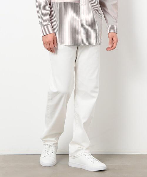 《素材》<カラー/#09ネイビー>リジット感がある上品な雰囲気のきれい目デニム素材。洗っても色落ちしにくいといった特徴を持った素材を使用しています。通常デニムで使用されるインディゴ染料を使っていないので、通常のデニム素材に比べ色落ちしにくくなっています。購入時のきれいな色が長続きし、色移りしにくいので着ていて安心な素材です。<カラー/#01ホワイト>春に最適な爽やかなホワイトデニムです。コーディネートに取り入れていただくと軽やかな印象になります。[取り扱い上の注意]<カラー/#09ネイビー>素材の特性上汗や雨等でぬれた時や強くこすられた場合等、多少の色落ち、色移りする事が有りますのでお取り扱いにはご注意下さい。<カラー/#01ホワイト #09ネイビー>強い日光(又は照明)を長時間受けますと変色の恐れがありますので、御着用及び保管の際には、ご注意ください。《デザイン》ストレートシルエットのデニムパンツ。程よいルーズさが魅力的です。腰回りに程よくゆとりを持たせていますが、膨らみのある丸いシルエットではなく、すっきりと見えるシルエットにしています。股下の長さは裾に溜まらないように、シューズに少し被るくらいがお勧めです。そうする事で着用時、裾に向かって真っすぐ生地が落ちてきれいなストレートラインが出ます。*人と地球に優しい繊維製品エコテックス(R)認証商品になります。有害物質が含まれていない安全で環境に優しい素材や附属を使用したサステナブルなパンツです。※画像の商品はサンプルとなりますので実際の商品と仕様、加工、サイズが若干異なる場合がございます。※こちらの商品はFIVE FOXes独自の採寸方法となっています。本サイトのサイズガイドと採寸方法が異なる場合がありますのでご了承ください。