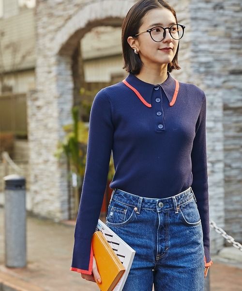 一枚で存在感のあるポロニット。シャープな角度をつけた襟と袖口にはバイカラーラインをきかせてポイントに。袖先にはスリットデザインをいれており、手先に抜けを感じるデザインになります。身頃はシンプルなシルエットなのでボトムスにINしやすく、スカートにもパンツにも合あわせて着用いただけます。**********************透け感:なし裏地:なし伸縮性:あり光沢感:なし生地の厚さ:普通**********************