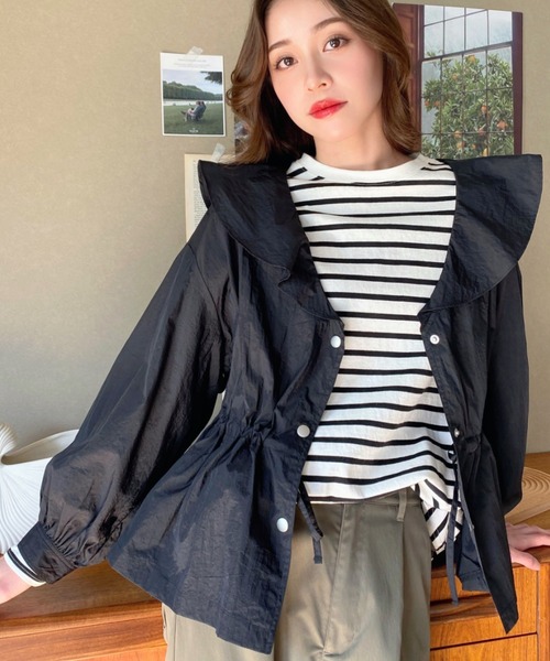 ★New Arrival★ 【エフォートレスに大人かわいく♪フリルカラーマウンテンパーカーが登場】 ◆Design ・フリルカラーが大人かわいく女性らしい印象を持つマウンテンパーカー。 ・大きく開いたネックラインとショート丈にぽわん袖が抜け感のあるこなれコーデを叶えてくれます♪ ・ウエストはドロスト仕様だからシルエットに変化をつけられるのも◎ ◆Fabric ・洗いっぱなしのようなくしゅっとナチュラルな風合いのナイロンワッシャー。 ・ほどよくハリのあるナイロン100%素材に施したワッシャー加工が表情豊かでこなれ感のあるやわらかい印象を与えます。 ◆Styling ・ボーダーTやロゴTにロールアップデニムでトレンド感のあるカジュアルコーデに◎ ・ワンピースやスカートコーデでガーリーなテイストにも◎ ~~~~~~~~~~~~~~~ 生地の厚み ふつう 生地の透け感 ややあり 生地の伸縮性 なし 生地の光沢感 ややあり ポケット あり 裏地 なし ~~~~~~~~~~~~~~~ ※商品画像は着用イメージです。光や角度により、実物と色味が異なる場合がございます。 また表示のサイズ感も実物とは若干異なる場合もございますので、予めご了承ください。 ※着用、お取り扱いの際は、商品に付いている品質表示とアテンションタグを必ずご確認ください。 【moment+/モーメントプラス】その瞬間にこの1着と――― より豊かで充実したライフスタイルを目指して、手軽にトレンドかつベーシックな着回せるアイテムをプチプライスで提供していきます。 ≪お買い物をよりお楽しみいただくために♪≫ ♡商品のお気に入り登録 完売カラーの再入荷通知や、完売間近の通知、セールの通知を受けることができます。 ♡ブランドのお気に入り登録 新商品や再入荷など、いち早くブランドのお得な情報を受け取ることができます。