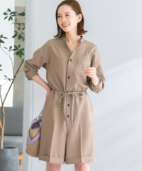 【1枚でこなれ感漂う、ウエストギャザーコンビネゾン】一着でお洒落見えを叶える、ハーフコンビネゾンが新登場。程良い落ち感のある素材を使用し、着心地の良いコンビネゾンに仕上げました。太もも周りにゆとりを持たせたハーフ丈シルエットで、美脚効果も抜群◎ウエストギャザーやセンタープレスを取り入れたデザインが、カジュアル過ぎず女性らしさ漂う一着に。ベーシックなカラー展開で着こなしやすいのもポイントです。袖をロールアップしたスタイリングや、釦を少し開け、首元を見せた抜け感のある着こなしもおすすめ。※商品画像は、光の当たり具合やパソコンなどの閲覧環境により、実際の色味と異なって見える場合がございます。予めご了承ください。※商品の色味の目安は、商品単体の画像をご参照ください。▼お気に入り登録のおすすめ▼お気に入り登録商品は、マイページにて現在の価格情報や在庫状況の確認が可能です。 お買い物リストの管理に是非ご利用下さい。-----------------------------透け感:なし伸縮性:なし裏地:なし光沢:なしポケット:あり-----------------------------