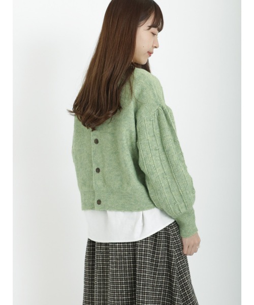 凹凸感のあるポップコーン編みが可愛らしさを演出するニット。 前後2wayで着用でき、カーディガンのような着こなしも楽しめます。 ふんわりとしたボリュームスリーブが、フェミニンな印象をプラス◎ パンツスタイルと合わせたナチュラルなスタイリングがおすすめです。 ※商品画像は、撮影環境やお客様のご利用のPC・スマートフォンのモニター環境などにより実物と色味に差異がある場合がございます。