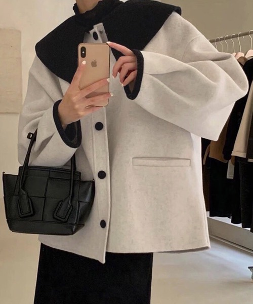 上品でクラシカルな雰囲気の中に、フェミニンさが漂う ■ Styling. 大きな襟がアクセントになっているショートコート。 ボタンや袖の配色にもこだわりが感じられるアイテムです。 ぽわんとしたスリーブで、シルエットまでかわいい◎ コーデに取り入れると一気におしゃれ見えします! ■ Point. ・裏地あり ・袖のギャザーでぽわん袖 ・スナップボタン -- ZOZOTOWNでお買い物をもっと楽しく! -- ■購入ボタン横の♡(ハートマーク)をクリック! 完売カラーの再入荷通知や、ラスト1点の通知、セールの通知も受け取ることができます。 (クリックで商品のお気に入り登録) ■ショップのトップページにある♡(ハートマーク)「お気に入りショップに追加」をクリック! 新商品や再入荷等、いち早くブランドのお得な情報を受け取ることができます。 (ブランドのお気に入り登録) ※モデル着用商品の画像はサンプルのため、実際の製品とは仕様や加工、サイズ等が若干異なる場合がございます。 ※商品の色味は、撮影場所や光のあたり具合・お客様のお使いのPCのモニター環境 などにより色味が違って見える場合がございます。予めご了承の上ご注文下さい。 アウター コート きれいめ 上品 フェミニン 大人かわいい ツートーン バイカラー カフェ デート 韓国