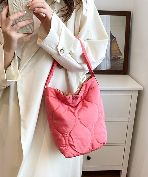 ツヤない生地に施したオニオンキルトがトレンド感アップ! 軽で柔らかいから使いやすい。 バッグ内側のスナップを留めると形を変えられるので、気分によって変更できます! シンプルなフォルムながらキルティング加工がされていることでトレンド感のあるトートバッグに。 丁度いい丈のハンドベルトが、肩に掛けでも可能です。 韓国風ファッション