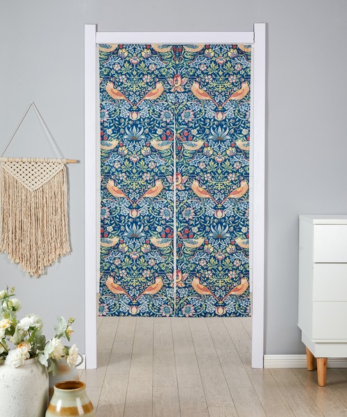 JUBILEE DOOR CURTAIN ウィリアムモリスのデザインを使用した『 のれん 』。 見た目にもやさしい印象を与える素材感はどんなお部屋にも馴染みやすく、 お部屋の雰囲気をさりげなくおしゃれに演出してくれます。 サイズはもっとも定番の 85x150cm。空間が華かやに、お部屋にもインテリアに馴染むモダンデザインです。 部屋の雰囲気がぐっとおしゃれになります。 プリントのクオリティが高く、ポリエステル100%で丈夫でお手入れも簡単。 非常に柔らかく、汚れがつきにくく洗濯機での洗濯も可能な素材です。 暖簾以外でも、目隠し、日除け、ブラインドとしてもご利用いただけます。 うすくやわらかい質感はたたんで収納するときにも場所を取りません。 ウィリアムモリスのデザインを使用しているJubileeの商品です。 ジュビリーオリジナルのロゴ入り。 ※突っ張り棒は別売りです。市販の標準的な突っ張り棒に対応しています。