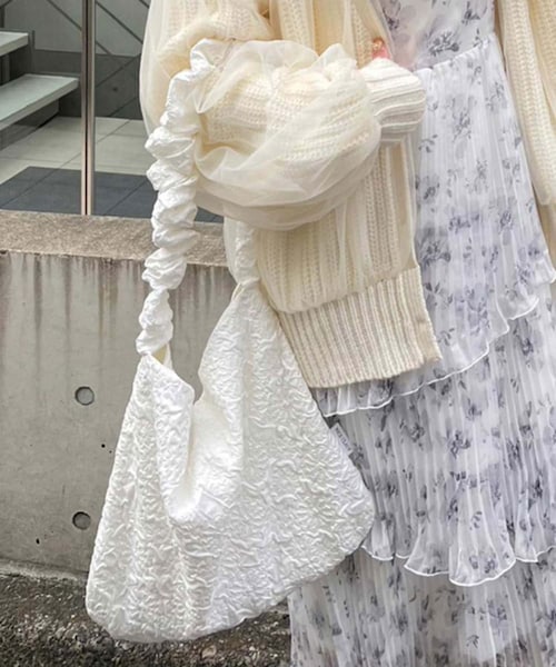 ~NICECLAUP 2023 early Spring collection~表面にしぼ感のあるハンドバッグカラーによって違う素材になっているそれぞれ違った印象を楽しめます。大きさも縦32×横43にマチも8cmとしっかり入るサイズ感が嬉しいポイント♪カラーは使いやすいホワイト、ベージュ、ブラックの3色展開シンプルなコーデにアクセントになってくれるオススメアイテムです。■オススメスタイリングしぼ感があることで、高級感が出るデザインでオケージョンシーンに合わせるのもオススメ。もちろん、デニム合わせのカジュアルコーデにアクセントとして合わせるもの◎スタイリングを邪魔しないデザインで、いつものコーデに合わせてお使い頂けるアイテムです。※サンプルでの撮影のため、実際のものと仕様や色が異なる場合があります。※室内、室外での撮影のため実際より明るく映っていたり、暗く映っていたりする場合がございます。※品質表示を必ずご確認下さい。▼お気に入り登録のおすすめ【気になるアイテムを登録】ハートをクリックしてお気に入りに登録すると完売カラーの再入荷やラスト1点の通知、セールの通知を受けとることができます。【ブランドを登録】新作入荷や再入荷、セール通知など、いち早くブランドの情報を受けとることができます。是非ご利用下さい♪2023SS