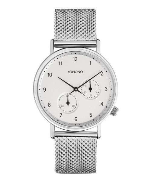 「レトロフューチャー」をデザインコンセプトに掲げる、腕時計とアイウェアをメインにユニセックスなアイテムを展開するアクセサリーブランドKOMONO(コモノ)。 【スペック】 ケース径:40mm ケース厚み:11mm ベルト幅:20mm 腕回り:17mm~23mm 素材:ステンレススチール、ミネラルガラス ムーブメント:日本製クォーツ 防水:10気圧(10ATM) 付属品:KOMONO純正BOX、保証書 保証:メーカー保証1年 KOMONO(コモノ) 時代に合ったアクセサリーを創造し続けるデザイナーズ集団-「 KOMONO」。 ラフ・マエスとアントン・ヤンセンスの2 人のアーティストによって、ベルギー・アントワープにて2009 年に設立された腕時計とアイウェアをメインにユニセックスなアイテムを展開するアクセサリーブランド。「KOMONO」というブランド名は、日本語の『小物』からインスパイアされ、その言葉の持つ意味の奥深さや多様性のとおり、老若男女全ての人々に愛されるようにという意味がこめられています。 デザインコンセプトは「レトロフューチャー」。そぎ落とされた「ミニマルなデザイン」のなかに、時代性を落とし込んだ「ユニークな素材使い」が特徴。 数々のファッションデザイナーを輩出したアントワープらしい洗練さを持ちます。