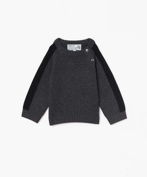 縦にも横にもよく伸び、ほどよく体にフィットするニットプルオーバー。 袖にラインが入っていて、スポーティなデザインです。 後ろに「b.」の刺繍が入っていてポイントになっています。 こちらは着脱しやすいように肩の部分はボタン開閉になっています。 ※商品にアテンションカードや品質表示タグが付属している場合は、必ずご確認の上、お取扱いください。 (##) 85~95cm(2歳):身丈33.5 70~80cm(1歳):身丈30