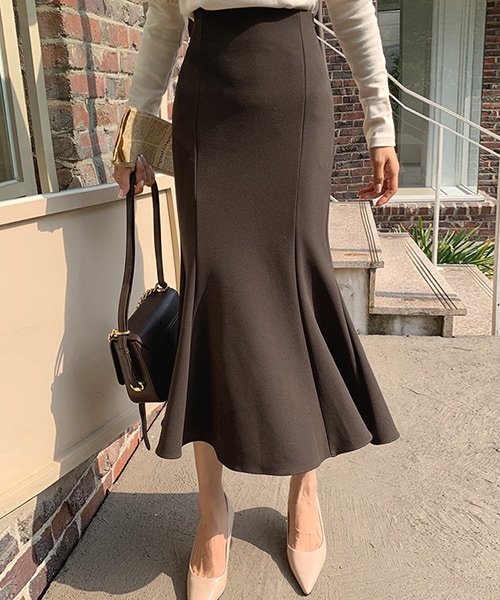[COMMENT]スリムフィットが女性らしいスカートです。縦のラインで切り替えたマーメイドラインがフェミニン。ウエストと骨盤ラインをすっきりと掴みます。腰内側はゴムでフィットします。着脱はサイドのファスナーで可能◎トップスをインでデイリー、オフィスコーデにおすすめ。※アイボリーは透け感が気になる場合がございます。スキントーンの下着とお召しいただくと安心です。
