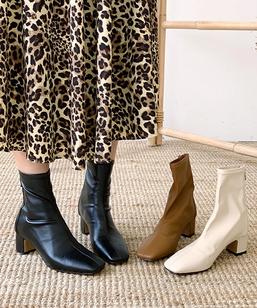 ◇裏起毛スクエアアンクルブーツ◇[COMMENT]履きやすいフィット感のブーツ。丈夫な合皮100%素材です。ストレートやブーツカットデニムや揺れ感あるスカートにもお似合い。[DESIGN]保温性の高い裏起毛処理です。スリムに添うアンクル丈の一足で安定感のあるミドルヒール。バックファスナーで着脱もしやすくモダンなスクエアトゥ。ヘミ:全色ビンナ:ブラウン ※ソール裏にビニールが貼られて配送されます。こちらは剥がれるようになっておりますので不良ではございません。予めご了承ください。