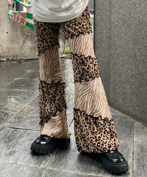 セブラ柄のジャガード生地とレオパード柄のベロア生地をメローでランダムに切り替えたフレアパンツ。ウエストはゴム仕様で、程よいフレアシルエットが脚長効果も抜群。コーデもポイントになるアイテム。・ベージュ、ブラック/黒の2色展開【サイズ展開】・2(Mサイズ)●Candy Stripper/キャンディストリッパー●-BRAND CONCEPT-NO RULE, NO GENRE, NO AGE年齢や性別にとらわれず、自由に自分を表現出来る服【お買い物をもっとお楽しみ頂くために】▼商品のお気に入り登録▼完売カラーの再入荷通知や、ラスト1点通知、プライスダウンしたセール通知も受け取れる♪▼ブランドのお気に入り登録▼新作や再入荷等、いち早くブランドのお得な情報が受け取れる♪