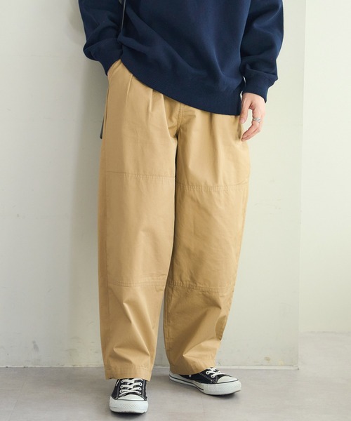 ダボっと感を楽しむ、ダブルニーワイドチノパンツ。アメリカ生まれのワークパンツ膝部分の生地を重ねたダブルニー仕様のデザインで、年間を通して穿けるコットン素材のワイドテーパードパンツ。フロント部分はタック加工を施し適度にスッキリと印象、サイドウエストをゴム仕様にしているので楽に穿けるのも魅力。ワタリからふっくらとしたボリューム感があるワイドシルエットでありながら、スタイルを選ばず幅広い着回しに万能です。Coordinate旬のビッグシルエットトップス、シャツやジャケット、ベストなどのレイヤードスタイルとも相性が良く、カジュアルスタイルやストリートスタイルが楽しめます。軽やかなコットン生地なので季節の合わせてシーズンスタイルに仕上げるのもおすすめです。***********************洗濯方法:洗濯機洗い(弱)裏地:なし透け感:なし伸縮性:なし光沢感:なし生地の厚さ:普通***********************※着用、お取り扱いは商品についておりますアテンションタグを必ずご確認ください。※ご覧のモニター環境や撮影環境により実際の商品と多少色味が異なって見える場合がございます。【お気に入り登録がオススメ!】●商品のお気に入り登録「在庫残りわずか」の通知や、「完売カラーの再入荷」、「セール」の通知を受けることができます。●ブランドのお気に入り登録新商品や再入荷等、ブランドのお得な情報を受け取る事が出来ます。
