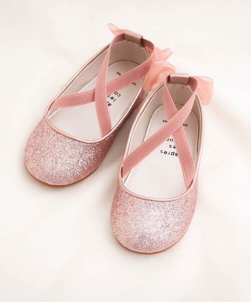 【apres les cours Ma cherie】 女の子にとっていつもよりちょっぴり 背伸びした記念日をアプレレクールが提案する「Ma cherie(マシェリ)」 昨年ご好評をいただいたラメパンプスが今年も登場。 シャンパンベージュのようなおしゃれなピンクと オーロラのように光るラメを使ったシルバーの2色展開です。 かかと部分にはオーガンジーのリボンが付いています☆ 卒園式/卒業式/入学式/入園式/参観日/発表会/冠婚葬祭 ****** 【アプレ レ クール マシェリ】 マシェリのお洋服は フォーマルとしても、ちょっとしたお出かけにも。 結婚式や入園入学式のフォーマルシーンに お誕生日や季節のイベントなどの記念フォトや ちょっとしたお出かけにも♡ 様々なシーンの思い出にマシェリと。 ”まいにち”に散りばめられた 小さな”とくべつ”をちょっぴり背伸びした記念日に変えて。 <アプレ レ クール マシェリ>といっしょにお祝いしましょう。 【 apres les cours -アプレレクール- 】 「キオク いろどる、こどもふく。」 大切なキオクを彩る、お気に入りの一枚。 「アプレ レ クール」は独自の色づかいやテキスタイルで日々をトクベツに過ごせる そんな「一枚」をお届けします。