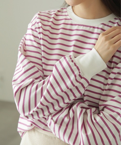 さらっと軽いTCOE天竺を使用したベーシックなデザインが魅力のボーダーロングスリーブTシャツ。身幅はビッグサイズシルエットですが、トップスインがしやすいように絶妙な着丈に仕上げています。ネックはあえて詰まり気味にして、レトロな雰囲気のデザインに。襟ぐりと袖口はオフカラーに仕上げた、ベーシックな配色のクロ、目をひくピンクの2色展開です。●商品特性●〇透け感:ややあり〇生地の厚さ:普通〇裏地:なし〇伸縮性:あり〇光沢:なし〇シルエット:スタンダード------------------------------------------------------商品のお気に入り登録➡ お気に入りアイテムの値下げ・再入荷・在庫1点などの通知を受け取ることができます。ブランドのお気に入り登録➡ 新商品や再入荷、セール、クーポン配布などお得な情報を受け取ることができます。※商品の色味は、撮影場所や光のあたり具合などにより色味が違って見える場合が御座います。------------------------------------------------------