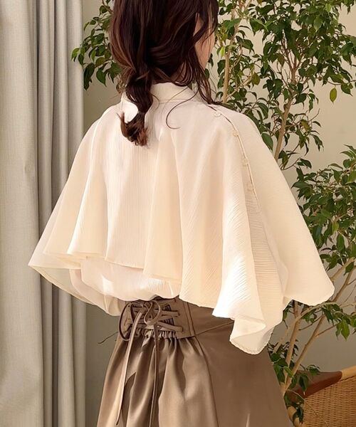 動くたびにゆれるケープがこなれ感を演出してくれるトレンドブラウス。 ■デザイン 存在感のあるケープデザインは前から見ても後ろから見ても華やかで品のある印象に。 とろみのある素材をたっぷりと贅沢に使用し、立体感のあるデザインに仕上げました。 肩はボタンで開け閉めできる2way仕様に。 ヘルシーな肌見せを楽しめるブラウスです。 ■サイズ感 程よくゆとりのあるサイズ感で窮屈感なく着用していただけます。 ウエストイン・アウトどちらもサマになる丈感にこだわりました。 ■スタイリング フェミニンスタイルならレーススカートやマーメイドスカート 、カジュアルスタイルならパンツやデニムとのスタイリングがおすすめ。 柔らかい生地なのでアウターも楽に羽織れます。 ・・・・・・・・・・・・・・・・・・・・・・ 透け感:ややあり(アイボリー・ピンク/L/グレー裾部分) 裏地:なし 伸縮性:なし 光沢感:なし 生地の厚さ:普通 ・・・・・・・・・・・・・・・・・・・・・・ ■商品のお気に入り登録 再入荷通知やのこりわずか、お得なプライスダウンの情報も受け取ることができます。 ぜひご登録ください◎ ※ブラックはWEB限定販売商品となっております。