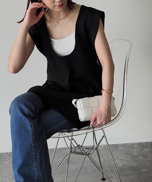 【Riberry ニットベスト】 着るだけでこなれ感抜群のニットベスト◎ ■Styling ニットやロンT、シースルートップスなどインナー次第で雰囲気が変わるニットベスト◎ デザインがあるシルエットなので着るだけでコーディネートにこなれ感を出すことができます♪ ■Detail 肩が少し隠れるシルエットなので、インナーをキャミソールにしても着瘦せして見えるデザイン。 袖のあきが広めなのでインナー合わせにも困りません◎ 前後のあきも広いので、ロゴTを合わせてもロゴを見せることができます! ■Material 春と秋に活躍してくれるニット素材。 ウールなどは入っていないので着方次第では初夏まで活躍する素材感です♪ ※詳しいお手入れ方法は商品タグをご参照ください。 ベスト/ニットベスト/シンプル/レイヤード/着回し/デイリー/カジュアル/大人カジュアル/Uネック/ ロングシーズン/モード 【Information】 ◆《お気に入り登録》がオススメ◆ ・「商品のお気に入り登録」で再入荷通知や、ラストの通知、セール通知も受け取ることが出来ます。 ・「ブランドのお気に入り登録」で新商品や再入荷など、お得な情報を受け取ることが出来ます ※撮影時のライティング、ご覧になっているモニター・PC環境により、実際の商品と色味が異なって見える場合がございます。予めご了承をお願い致します。 ※ご注文いただいた予約商品のお届け時期の確認は、注文履歴ページより行えます。