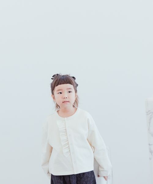 ◇素材ボディは着やすいコットン素材のカットソーを使用。春先の肌寒い日の羽織とした大活躍間違いなし。 ◇デザインフロント部分にフリルを施したカットカーディガン。フリルはスナップボタンで取り外し可能なので、シンプルなカーディガンとして着ることも可能。ジャストな着丈とゆったりとしたワイドシルエットのバランスが絶妙で可愛い1枚。◇スタイリングモノトーンでまとめれば、ちょっとした”おめかしシーン”でも着て頂けます。甘ったるいガーリーではないので、ぜひ男の子にもチャレンジしてほしいアイテムです!※屋外の光や照明の当たり具合で、実際の商品の色味とカラー別画像の色味に違いが発生する場合がございます。商品の色味は後方の寄り画像をご覧ください。