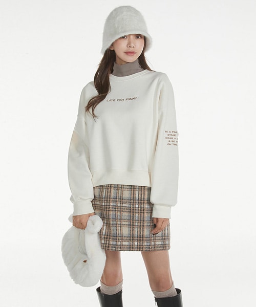 [COMMENT]一着あれば冬も安心の保温性ばっちりなカジュアルスウェットです♪繊細なポイントが加わり他と差もつきます。ゆったりとしたフォルムが楽ちんでタートルネックTシャツやシャツを首や裾からチラ見せするのもおしゃれです◎・裏起毛 ・ラウンドネック・ドロップショルダー×長袖・フロント&左袖刺繍英字レタリング・クロップド丈 ・リブヘム※クリームは透け感が気になる場合がございます。スキントーンの下着とお召しいただくと安心です。※刺繍にずれが生じる場合がございます。