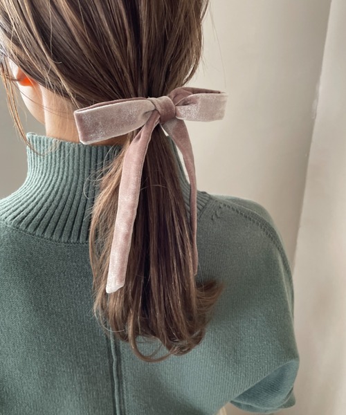 ■デザイン■ ゴムに差し込むだけでヘアアレンジが決まるアイテムです! リボンのデザインですが、ベロア素材なので可愛くなり過ぎず大人っぽい印象で使っていただけます。 カジュアルな服装に外しとして使っていただくのもオススメ◎