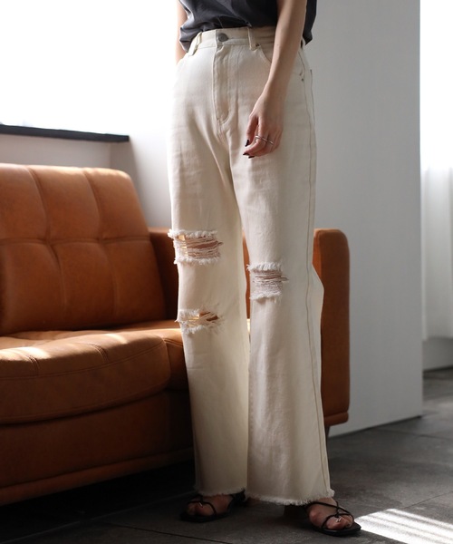 ap retro 【ダメージデニムワイドパンツ カラーパンツ】 こんなの欲しかった!を叶えるダメージパンツの入荷です! 《styling》 この春おすすめのダメージデニム! 少し多めの破れがなんとも可愛い。 緩めのサイズ感で見た目が可愛く仕上がります。 ロゴスウェット合わせで定番カジュアルにも。 キレイめトップスと合わせてもOK!フリルブラウスやボリュームスリーブシャツなど 大人アイテムと合わせて崩しても◎。 ワンサイズ大きく合わせてもベルトで調整してもOKです! 《detail》 程よく柔らかくしっかりとした安心感のあるデニム生地。 少し多めに破れたデザインが春欲しくなる1点。 ブルーは後ろポケットをわざと取り外しカラーが楽しめるようデザインしてあります。 ※アイボリーとブラックは後ろポケットありです。 裾もフリンジを施しており抜かりなく可愛い1本です。 デニムパンツ/ダメージ/ダメージデニム/ワイドパンツ/パンツコーデ/おでかけコーデ/きれいめ/大人カジュアル 【お買い物をよりお楽しみいただく為に】 <Instagram> <TikTok> apretro_official 新作情報やルックを配信中 ★商品のお気に入り登録★ ♡をクリックをおすすめします。 完売カラーの再入荷や、ラスト1点の通知、 セールの際の通知を受ける事ができます。 ★ブランドのお気に入り登録 ★ 新商品情報やお得な情報をいち早く通知されます。 ぜひ、登録お願いします♪ ※ご注文いただいた予約商品のお届け時期の確認は、注文履歴ページより行えます。 ※他のキャンペーンにより、期間中に価格が変動する場合があります。※セールは予告なく終了させていただく場合もあります。