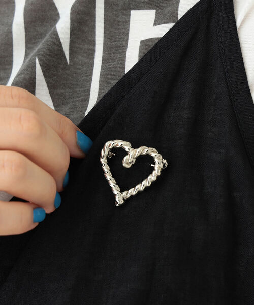 いつものコーデに華やかさをプラス■デザイン小さなハートモチーフが可愛らしすぎず、大人女性にも取り入れやすいブローチ。お持ちのバッグやストール、ジャケットにプラスするだけで普段とは違ったスタイリングをお楽しみいただけます。■素材合金, 真鍮【アクセサリー・小物雑貨の取り扱いについて】・貴金属は、体質により、かゆみやかぶれを生じる場合があります。・皮膚に異常を感じた場合は直ちにご使用を止め、専門医にご相談下さい。・家事やスポーツ、就寝時や乳幼児の世話をする時などは、身体に危害を及ぼす場合がありますので着用を避けて下さい。・熱伝導が高いので、高温の場所や寒冷地での着用は火傷や凍傷の原因となりますので着用を避けて下さい。・乳幼児が誤飲しないように、保管は十分にご注意下さい。※光の当たり具合やパソコンなどの閲覧環境によって実際の色味と異なって見える場合がございます。予めご了承ください。※商品の色味は商品単体で撮影した画像をご参照ください。