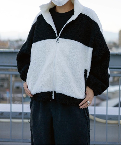 ボア切替が特徴的なビッグシルエットブルゾン。 これ一枚でトレンドスタイルに格上げしてくれます。 一着持ってて損なしのアイテムです。 ・ユニセックスで使えるデザイン ・リング型のファスナーの持ち手がアクセント ・全体的にルーズなビッグシルエット ・全体的にワイドなシルエット