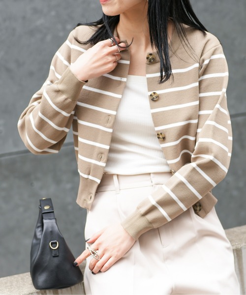 【大人気シリーズからボーダーカーディガンが登場!】 軽さと発色の良さが魅力のエステルヤーン生地を使用。 シワになりにくく、お家でお手入れしやすいのも嬉しいポイントです◎。 ゆったりした身幅ながら、クロップド丈のシルエットによりコーデのバランスが取りやすくなっております。 コーディネートを引き締めるマーブル調の配色ボタンがアクセントに。 【商品ポイント】 ・デコルテや顔周りをすっきりと見せてくれるクルーネックタイプ ・程よい弾性がありつつ、軽やかでソフトタッチな風合い ・型くずれがしにくく、フィット感のあるシルエット ・マーブル調の配色ボタンがポイントに ・シワになりにくく、お取り扱いのしやすい素材 【エステルヤーンシリーズ】 ・CWA1031105A0008 エステルヤーンボーダースキッパー ・CWA1022105A0004 エステルヤーンクルーネックカーディガン ・CWA1022201A0007 エステルヤーンペンシルスカート ・CWA1022209A0003 エステルヤーンロングワンピース ---------------------------------------------------- ■商品特徴 洗濯方法:手洗い可能 透け感:なし 伸縮性:あり 光沢感:なし 生地の厚さ:普通 ---------------------------------------------------- ■素材 ポリエステル100% ---------------------------------------------------- ※着用、お取り扱いの際は、商品についている品質表示とアテンションタグを必ずご確認下さい。 ※商品タグに記載されている商品名がWEBでの表記名と異なる場合があります。 ※実際の商品と仕様、加工、サイズが若干異なる場合がございます。 ※照明の関係により、実際よりもやや明るく見える場合がございます。 またパソコンなどの環境により、若干製品と画像のカラーが異なる場合もございます。予めご了承くださいませ。 【お気に入り登録】してお得な情報をCHECK!! ・「商品のお気に入り登録」で再入荷通知や、ラストの通知、セール通知も受け取ることができます。 ・「ブランドのお気に入り登録」で新商品や再入荷など、お得な情報を受け取ることができます。