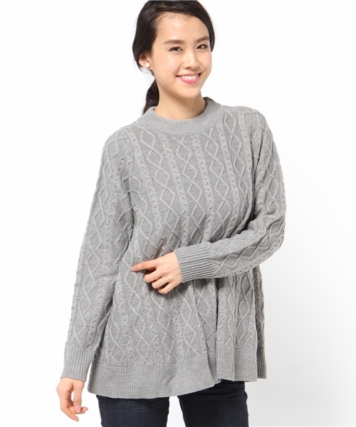 Discoat(ディスコート) メリハリケーブル×ふんわりAラインシルエットがかわいらしい1枚♪トレンドもしっかりおさえたミディハイネックはインナーにシャツをコーデしても◎ ちょっぴり着丈長めの仕様でパンツスタイルにもおすすめ☆起毛感がないので春先までしっかりお使いいただけます。