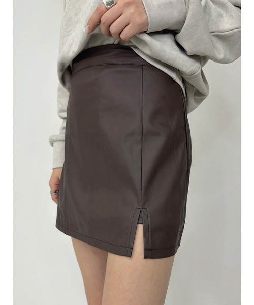 【商品説明】 ■Detail トレンド感溢れる裾スリットを施したフェイクレザーミニスカート。 すっきりとしたウエスト周りと広がり過ぎないタイトシルエットが女性らしさを際立たせる一着です。 同素材のインナーショートパンツ付きなので、ミニ丈でも安心して着用できるのも嬉しいポイント。 バックゴム仕様にすることで圧迫感のない履き心地と、フロントのきちんと感のキープを両立させています。 光沢を抑えているので合わせやすく、いつものコーデに加えるだけで一気にオシャレな印象に。 オールシーズン活躍してくれるアイテムです。 ■Styling オーバーサイズのニットやスウェットから裾をチラ見せさせても◎ Y2K感のあるBROWNは、同系色でまとめたコーデで仕上げるのがおすすめ。 ■生地感 透け感:なし 裏地:あり 伸縮性:あり 生地の厚さ:普通 <おすすめ便利機能> ▼商品のお気に入り登録▼ 商品ページ内のハートマークをクリック! 完売カラーの再入荷や、 ラスト1点の通知、 お得なお値下げの通知を受ける事ができます。 ▼ブランドのお気に入り登録▼ 新商品や再入荷など、 ブランドのお得な情報をいち早くお知らせします。 ぜひご活用ください!