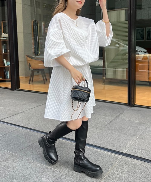 着回し抜群キルティングジャガードフレアミニセットアップ ●ふわっとしたトップスとスカートとセットアップ ●別々でもきれる着回し抜群アイテム登場! ●トップスは袖の裾が絞れる仕様になっているので自然にふんわりしたシルエットにしてくれます◎ ●スカートは膝上のの丈感でタックが入っているのでさりげないフリルを作ってくれます ●どこの角度でも女性らしく見せてくれます◎ セットアップ / キルティング /ジャガード/ キルティングジャガード / ボリューム袖 / 袖ボリューム -------------------------------------------------------------- 生地の厚さ:やや薄い 伸縮性:なし 透け感:なし(オフホワイトややあり) 裏地:スカート部分あり -------------------------------------------------------------- ※商品のお取り扱いに関しましては、商品に付属の アテンションカード、洗濯ネームをご覧ください。 ※撮影場所やお使いのモニター環境により若干お色味が 異なる場合がございます。 特にロケの撮影では明るく見える傾向にございます。 ※サイト上ではフリーサイズの表記ですが、商品タグには Mサイズと表記されている場合がございます。 その場合、ワンサイズでのご用意となりますのでサイズミス などではございません。詳しいサイズはサイズスペックを ご確認いただきますようお願い致します。 ※サイト上でのカラー名とお届けした商品に記載されている カラー名が異なる場合がございますので予めご了承ください。 --------------------《Information》-------------------- 【商品のお気に入り登録】 →カートに入れる右側の【♡マーク】をクリック! 完売カラーの再入荷通知やラスト1点の通知、 セールの通知を受け取ることができます。 【ブランドのお気に入り登録】 →ブランドタグのページから【♡お気に入りショップに追加】 をクリック! 新商品や再入荷など、ブランドのお得な情報を いち早く受け取ることができます。 是非ご登録頂き、お買い物をお楽しみください◎ <返品・キャンセルについて> ・着用・洗濯後の返品は致しかねます。 ・商品到着後、着用前に商品を確認して頂きますようお願い致します。 ※ご注文いただいた予約商品のお届け時期の確認は、注文履歴ページより行えます。 ※他のキャンペーンにより、期間中に価格が変動する場合があります。※セールは予告なく終了させていただく場合もあります。