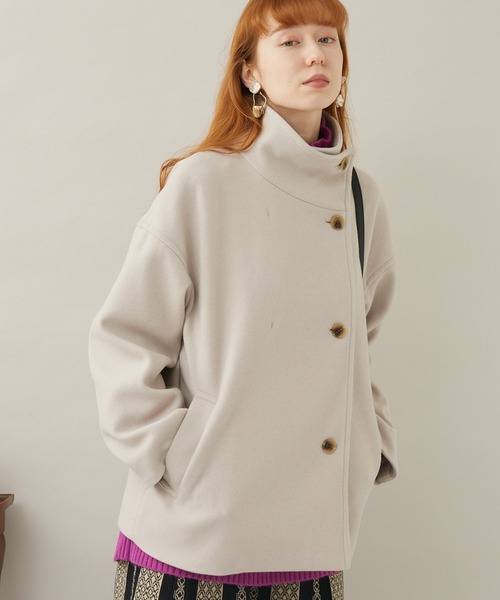 きれいめにもカジュアルにも、スタンドカラーショートコート。 ○POINT ・襟は立てても寝かせてもきれいに決まる2WAY仕様。 ・ヒップに掛かる安心丈で、着膨れやすいレイヤードもバランス良くまとめてくれるのが魅力です。 ・フロントダブルのアシンメトリーデザインで、着るだけで洗練された印象に。 ○STYLING ・定番のカジュアルスタイルはもちろん、オフィスやお呼ばれにも、多用途にお召いただけます。 ・シンプルになりやすいので、季節らしいシーズンアイテムを取り入れるのもおすすめです。 裏地:あり 光沢:なし 伸縮性:なし 透け感:なし 生地の厚さ:やや厚手 ポケット:あり ※照明の都合上、多少の色ブレが生じてしまう可能性がございますので、予めご了承くださいますようお願いいたします。