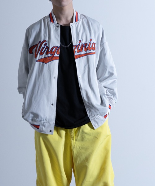 取り入れるだけで旬なスタイリングに。メモリー ロゴ刺繍 ビッグスタジアムジャンパー。 【スタイリッシュに仕上げたバーシティジャケット】 トレンドとベーシックを兼ね備えた、インパクトのある刺繍がポイント◎ 生地は柔らかな着心地のメモリー生地を使用。 着回しやすく、重ね着をしてもスムーズな着脱が可能。 【デザイン】 ボディーカラーを単色にすることで癖のないシンプルなデザインに。 スタジャンらしいフロントの刺繍や各所のラインがアクセント◎ 程よく肩の落ちた、ゆったりとしたオーバーサイズのシルエットが特徴。 【コーディネートに着映えるカラー展開】 ブラック、ブルー、グリーン、ホワイトの4色。 【スタイリング】 トップスにパーカーやスウェット、ボトムにデニムパンツを合わせたアメカジスタイル。 カーゴパンツやスウェットパンツを合わせたスポーツミックス、古着と様々なスタイルで活躍する1枚。 カジュアルからストリートまで幅広いコーディネートに対応できるアイテムです◎ メンズ・レディースを問わない男女兼用の対応商品で、プレゼントにもオススメ!