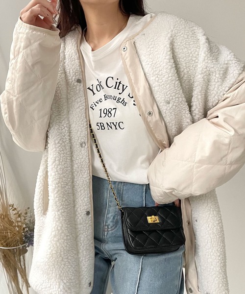 ボアの切替が目を惹く、リバーシブルデザインのキルティングコート 身頃をもこもこのボア生地で切り替えた、ノーカラーのキルティングコート。その日の気分によってリバーシブルで着用することができるので、雰囲気の変化も楽しめます。様々なボトムスと合わせやすい丈感で、幅広いスタイリングに活躍するアイテムです。 ------------------ 透け感:なし 生地の厚さ:普通 裏地:なし 伸縮性:なし ------------------ ※撮影時のライティング、PCやスマートフォンの環境により写真の色味が実際の商品と異なって見える場合がございます。ご了承の上お買い求め下さいませ。 ※モデル着用画像は実際の色と多少異なる場合がございますのでマネキン画像をご確認ください。 《お知らせ》 ▼商品のお気に入り登録 お気に入りアイテムの値下げ・再入荷・在庫1点などの通知を受け取ることができます。 ▼ブランドのお気に入り登録 新商品や再入荷、セール、クーポン配布などお得な情報を受け取ることができます。 ※ご注文いただいた予約商品のお届け時期の確認は、注文履歴ページより行えます。