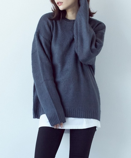 ふわっと軽く柔らかい質感で、保温性があるモヘアタッチのニットプルオーバー。ゆったりとしたオーバーサイズで、男女兼用で着用していただけるユニセックスアイテムです。シンプルで着回しの幅が広いので、カジュアルからきれいめ、リラクシーウェアやワンマイルウェアとしても◎